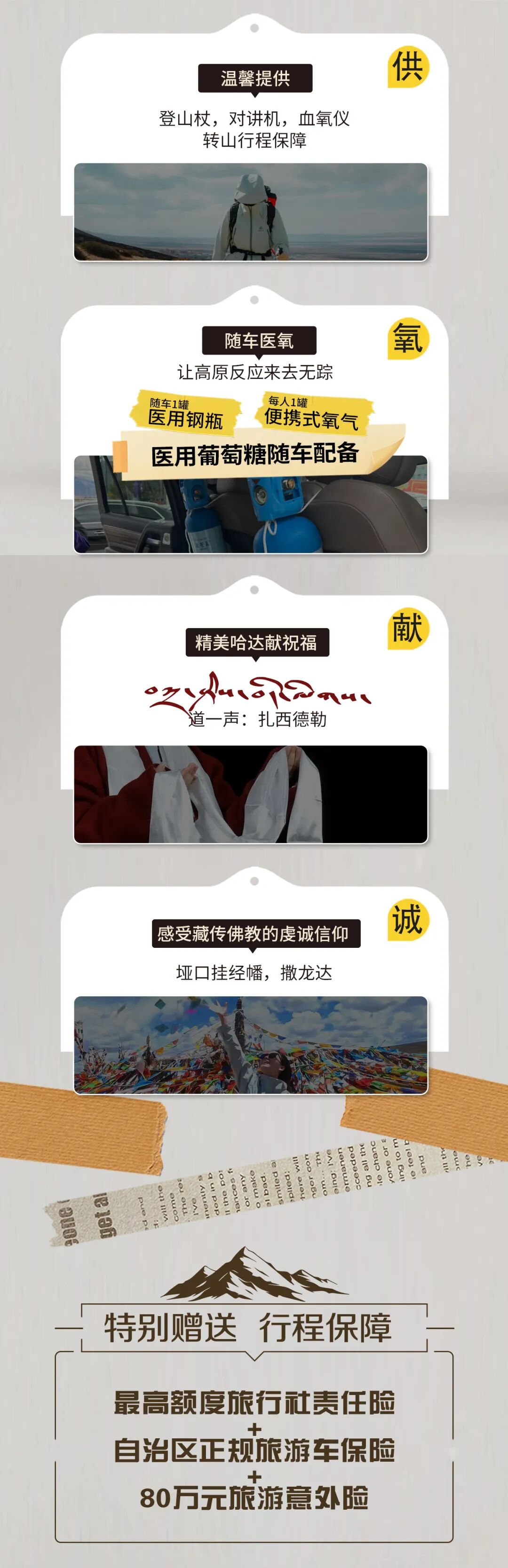 特别赠送:最高额度旅行社责任险+自治区正规旅游车保险+80万元旅游意外险。