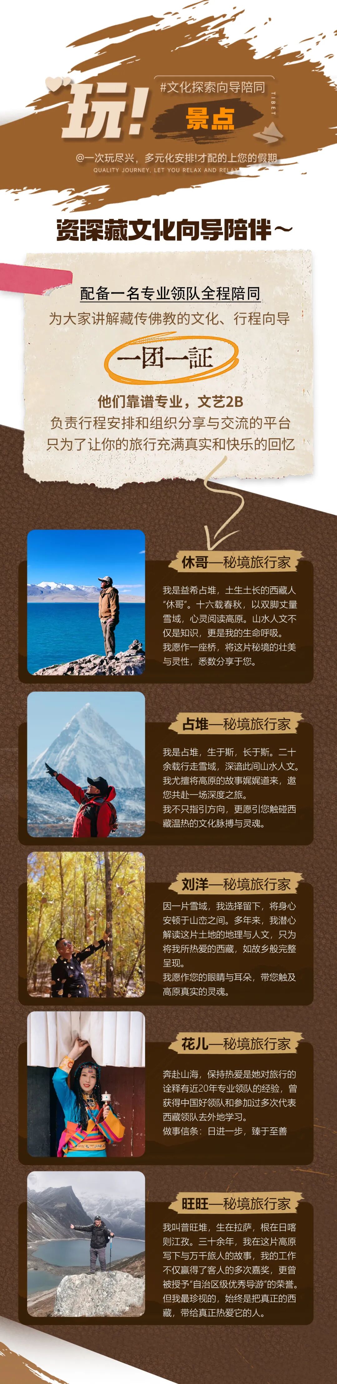4、【领队】配备一名专业领队全程陪同,为大家讲解藏传佛教的文化、行程向导,并保证一团一证。(持证不代表他们像传统导游一样无趣,是为了保障团队的资质和安全。他们靠谱专业,文艺2B,负责行程安排和组织分享与交流的平台,只为了让你的旅行满满真实和快乐的回忆)。
