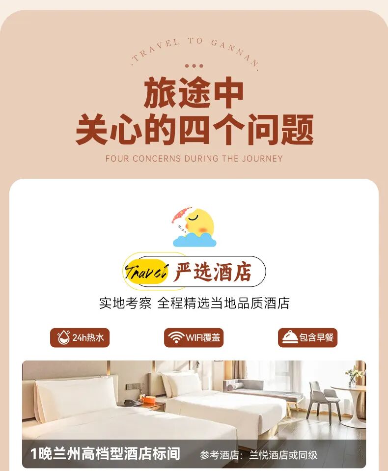 1、交通:兰州出发及兰州解散的全程专属用车及司机星级服务(含司机餐补、住宿)