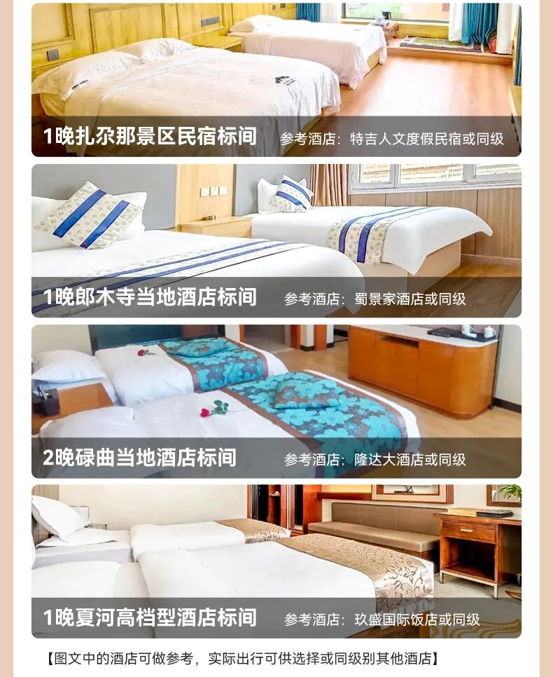 第三天:郎木寺当地酒店标间第四天:碌曲当地酒店标间