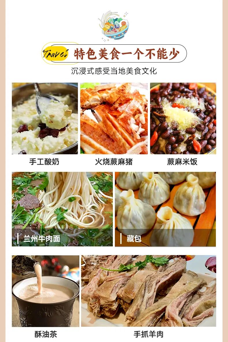 美食推荐:晚上,大家可前往赫赫有名的小吃街【正宁路夜市】“扫荡”一番!,品尝有名的老马家牛奶鸡蛋醪糟,以及各种特色小吃,体验一把地道的兰州生活。