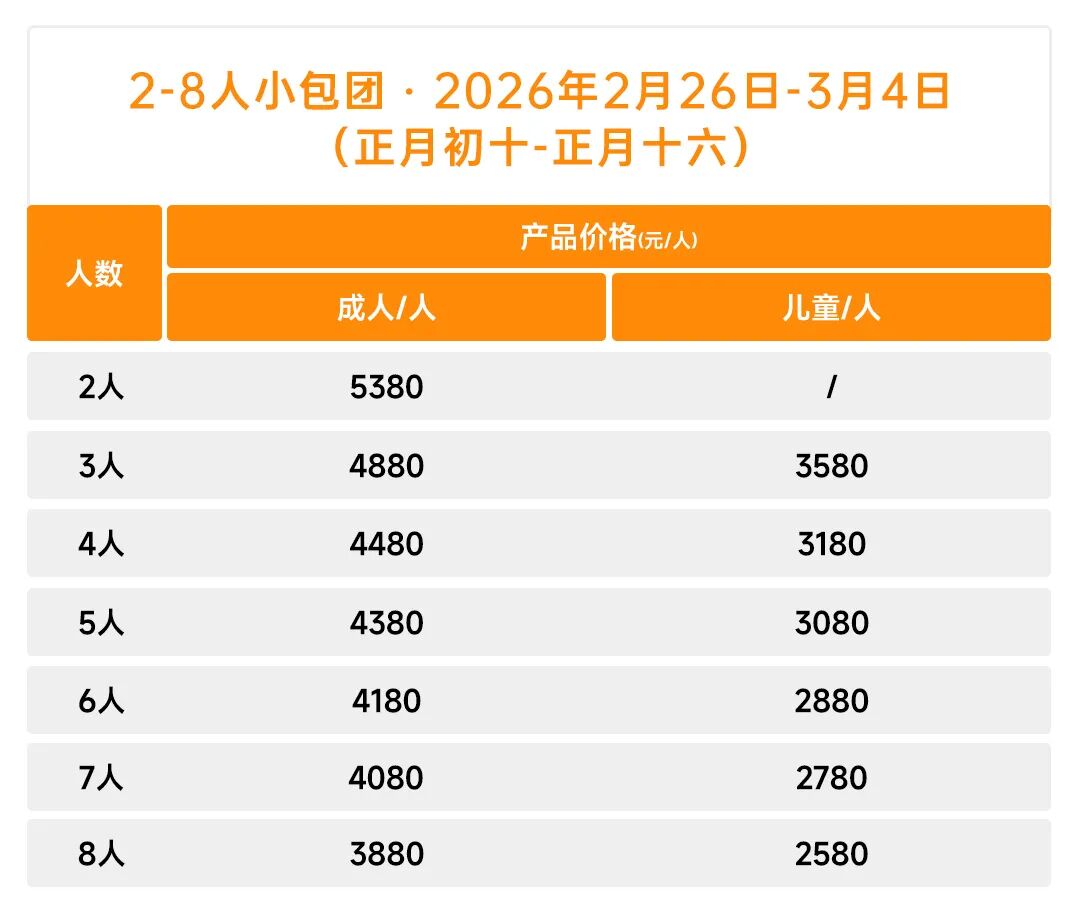 2-8人小包团:一单一团随时出发;