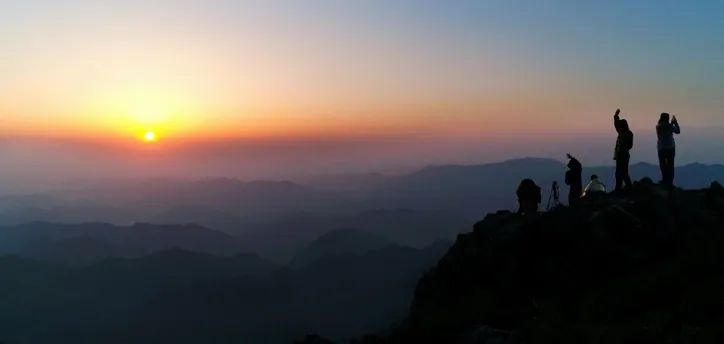 根据当天的日出时间起床,简单吃点早餐后乘车出发前往太子尖。停车场下车后开始徒步上山,大约40分钟后登顶,来到太子尖等待云海日出。运气好的好,你可以看到那犹如天河般浩瀚奔腾的云海, 那色彩涌动将天际点缀成犹如红妆的晨曦与日出,那海市蜃楼般若隐若现的浸沐在晨雾中的连绵群山……一切都那么妙不可言。