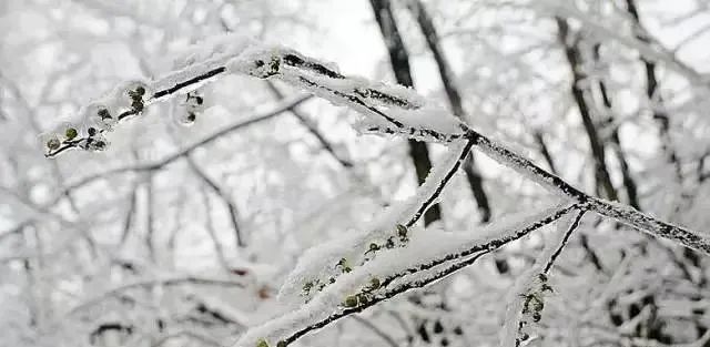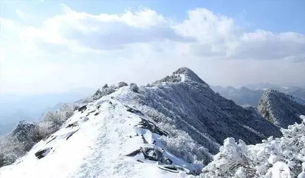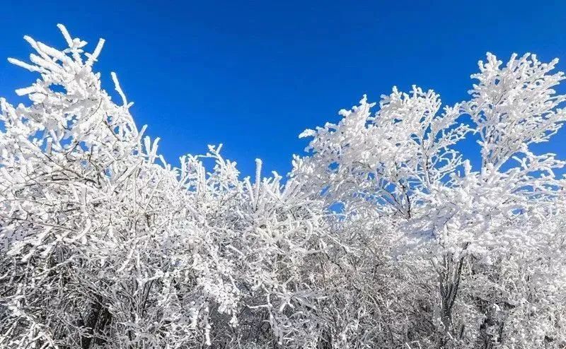 一场冻雨过后,远山被白雪覆盖,古树苍松也被冰雪包裹,漫山遍野的树枝上挂满了玲珑剔透的冰晶。,行走在山上,仿佛走进了童话中的水晶宫开启一段“冰雪奇缘”。