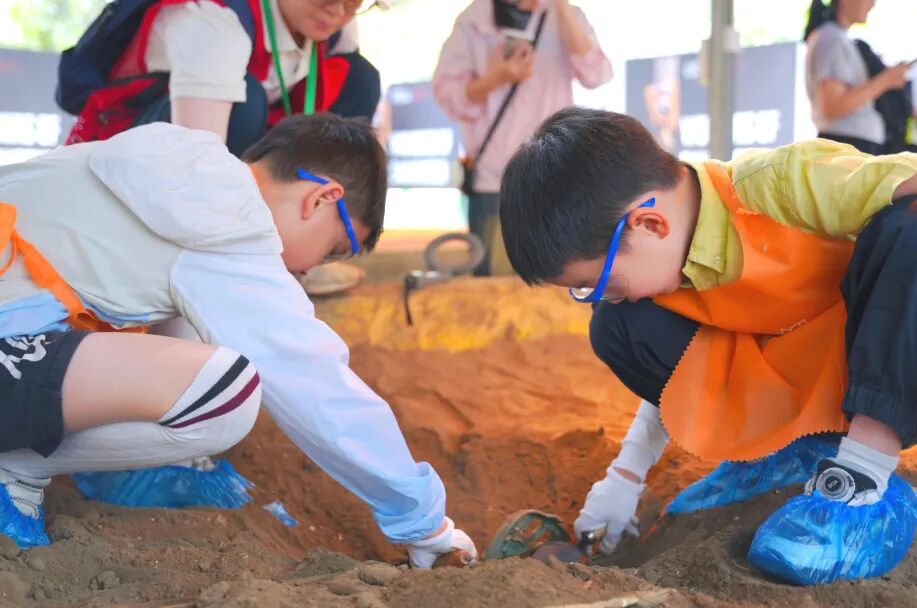 在真实复原的考古坑中,亲手操作手铲、刷子等专业工具,经历从勘探定位到文物提取的全流程,体验考古发掘