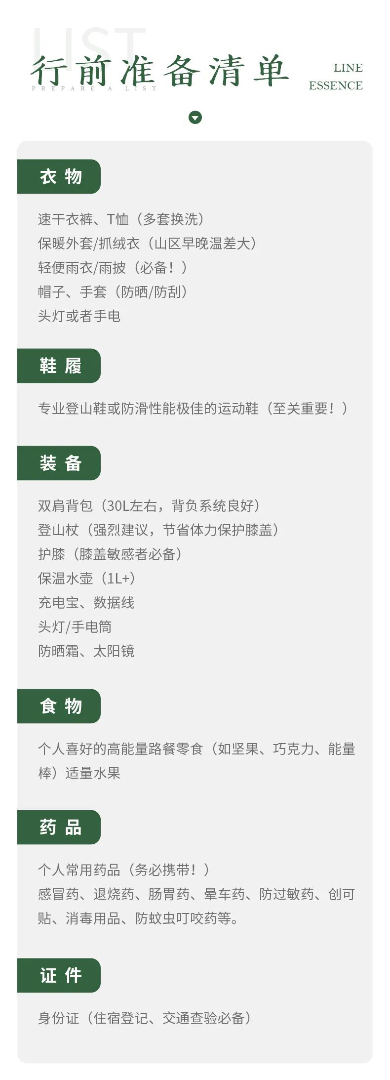 · 活动出发前3天,领队将发布详细《活动须知》及酒店信息。