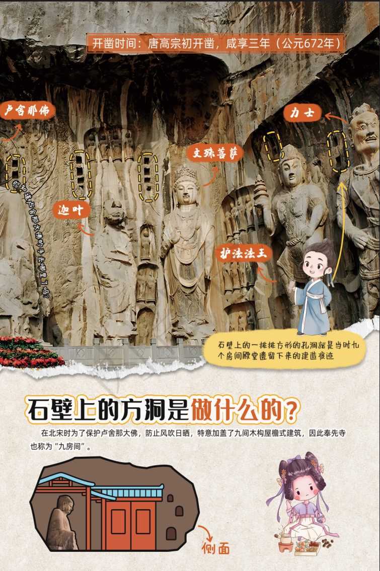 孩子们将化身「石窟考古小专员」,亲手绘制「龙门秘境探索地图」。随后通过「亲子密语工作坊」,解码武则天与卢舍那大佛的千年对话,读懂古人是如何用凿刻山河的勇气,为后代留下永不磨灭的文化之光