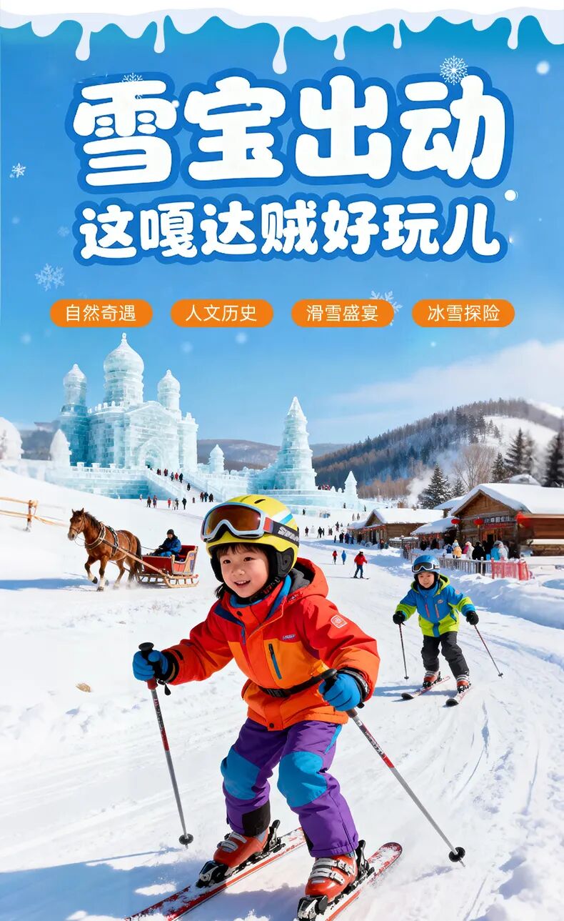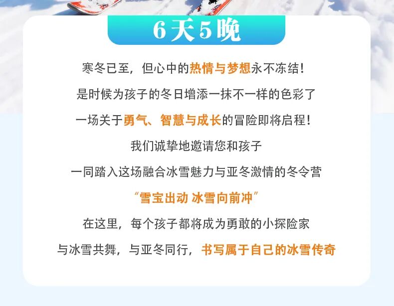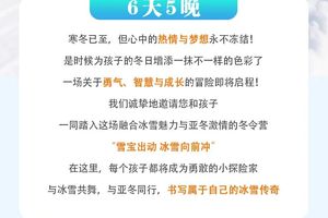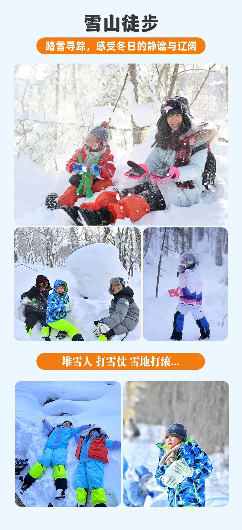 随后,前往【专业雪场】,开启为期3小时的滑雪初体验!不会滑雪的家庭可自行选择请专业的滑雪教练将进行基础指导,爸爸妈妈可以和孩子们一起,从蹒跚学步到勇敢滑行,在一次次摔倒与站起中,收获满满的成就感与欢笑。