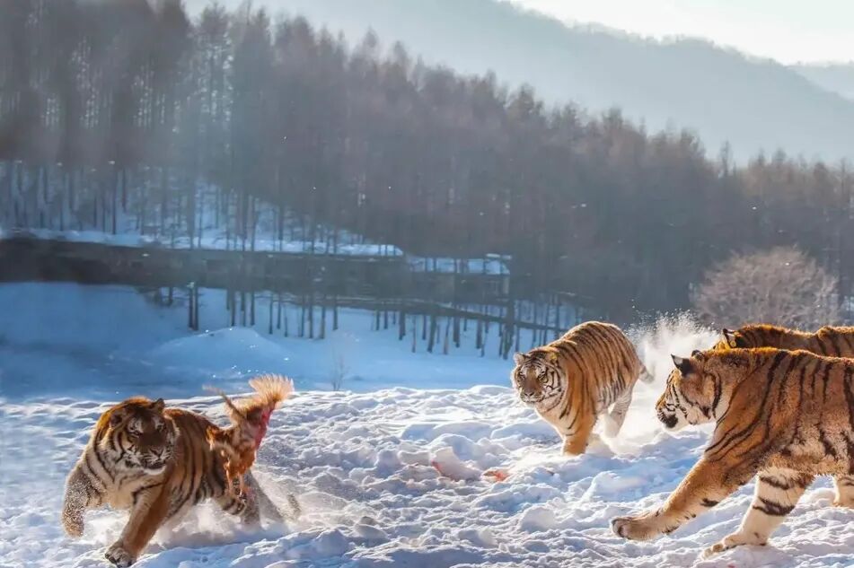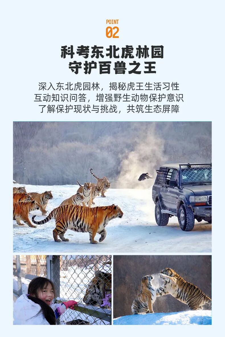 早餐后,我们将前往世界最大的东北虎饲养基地。乘坐特制的惊险观光车,孩子们可以隔着车窗,近距离观察百兽之王的威猛姿态,投喂活鸡的场面更是惊心动魄。领队老师会讲述关于东北虎的趣味知识,这是一堂生动的自然课。