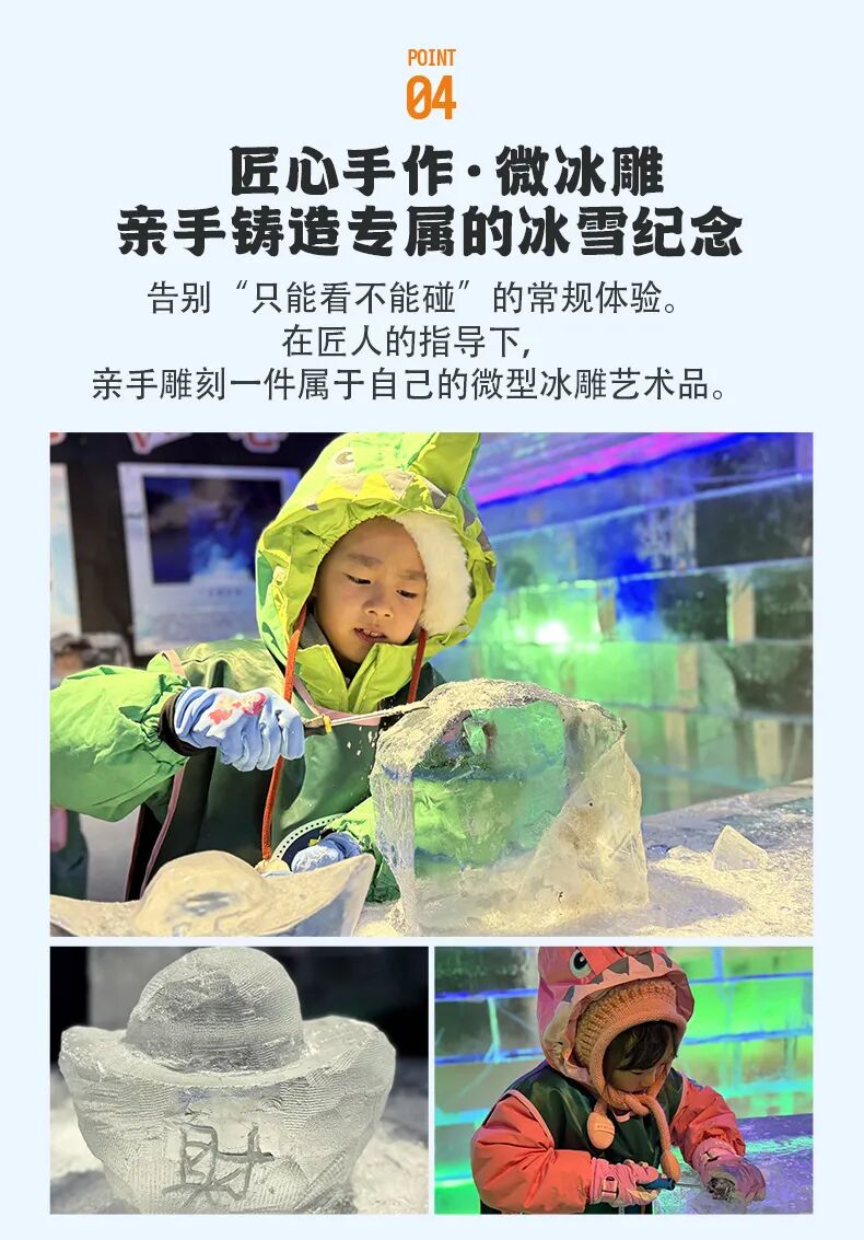 【微冰雕DIY】导师讲解冰雕的发展史,雕刻技巧,雕刻专属微冰雕,用小铲与刻刀打磨晶莹的冰砖。孩子天马行空的想象力在此刻成型,无论是小雪熊还是冰雪城堡,都是独一无二的艺术结晶。