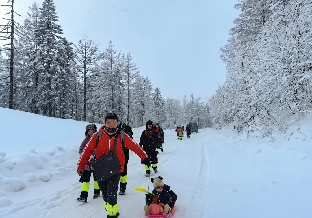 在酒店享用一顿温暖的早餐后,我们即将告别美丽的哈尔滨。登车出发,车窗外的景色逐渐从城市变为广袤无垠的东北黑土地大粮仓。我们的亲子领队会为大家讲述这片肥沃土地的故事,让孩子们理解“北大仓”的含义。当连绵的雪山映入眼帘,我们知道,亚布力滑雪度假区就在前方。