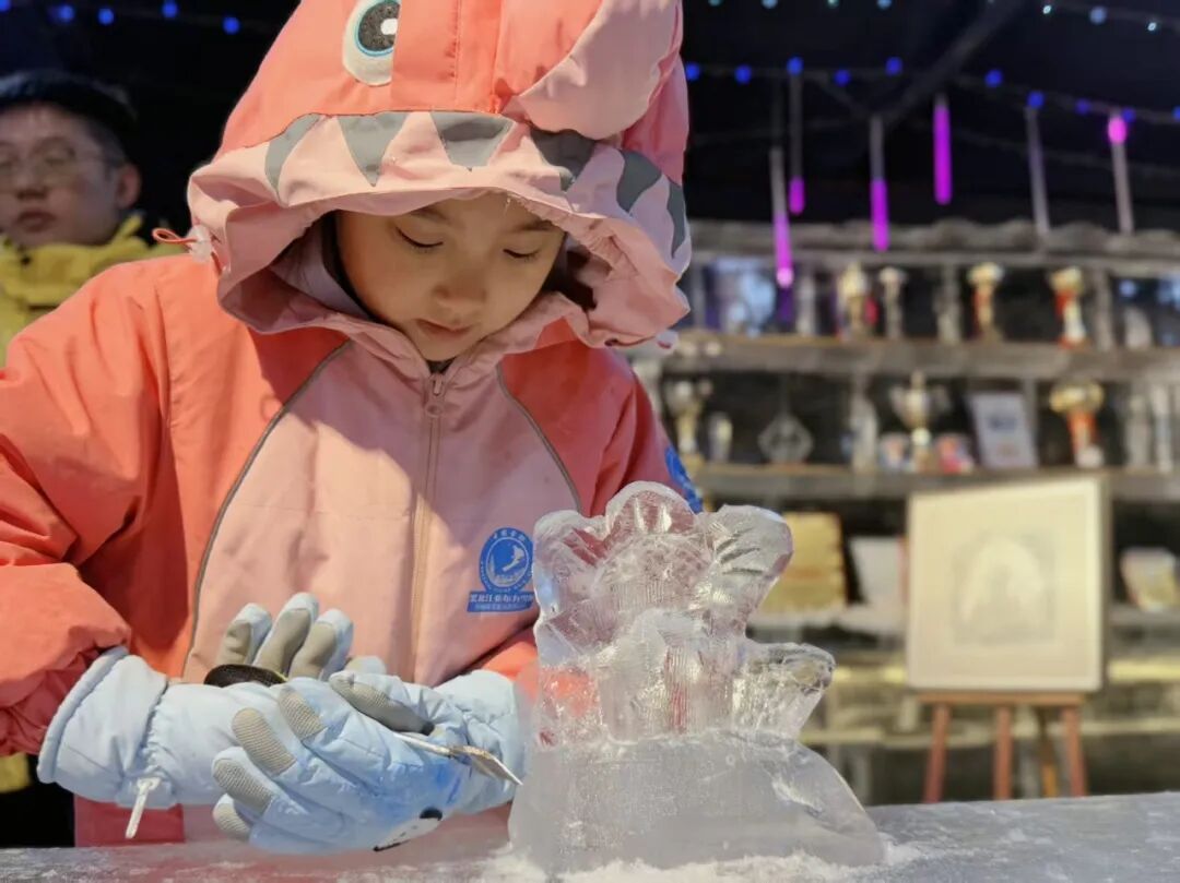 返回市区享用一顿温暖的东北家常菜,围桌分享今日的创作与见闻。孩子兴奋地展示冰雕作品,回味冰雪世界的绚烂,暖黄的灯光下,笑声与热气交融,为这一天画上圆满句号。