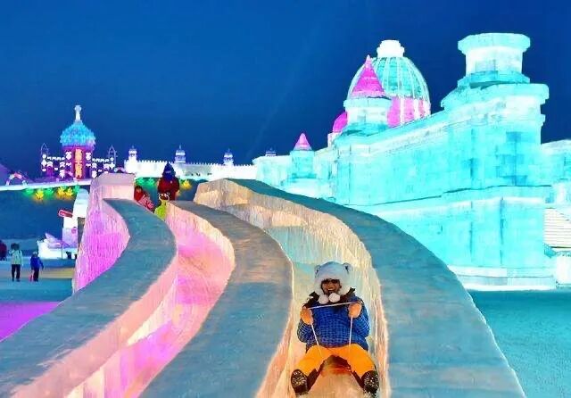 【冰雪大世界畅玩】傍晚时分步入冰雪大世界,恰逢华灯初上。孩子乘上梦幻冰滑梯,家长在冰迷宫外微笑守望,全家在流光溢彩的冰雕群中合影,定格童话般的夜晚。