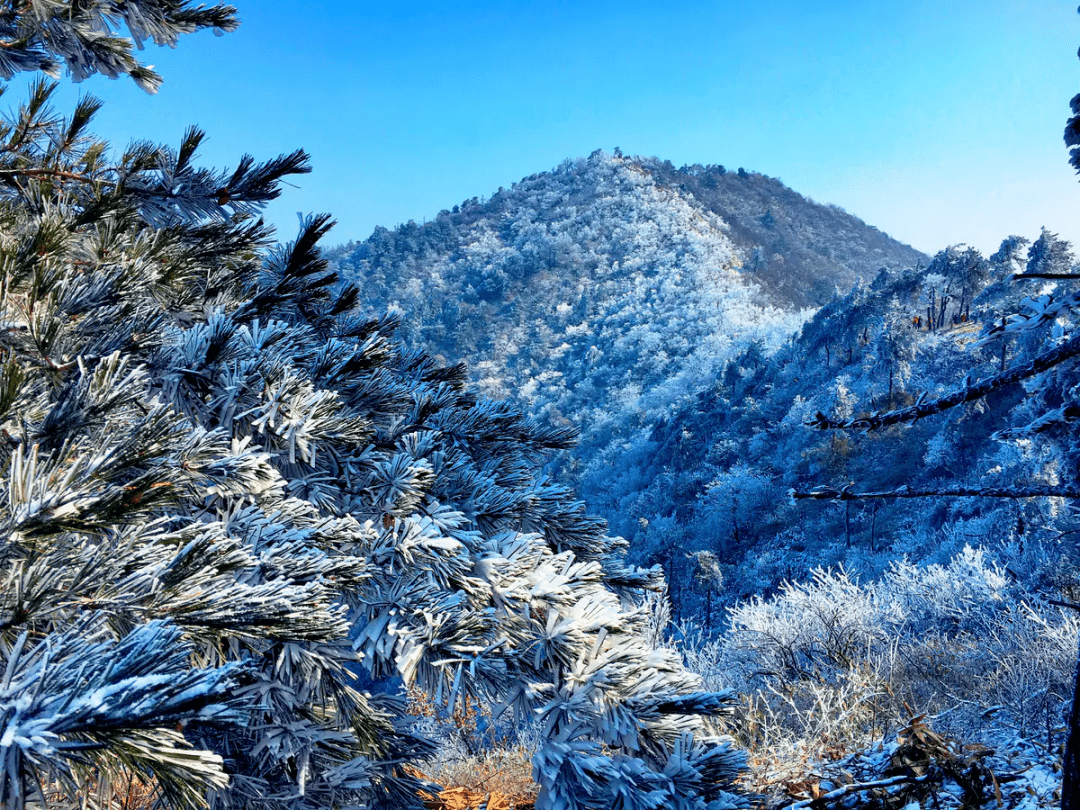 冬季的杏梅尖,玉树凌空,风景奇佳,登顶一眼望去,云雾缭绕,山峦叠嶂,无限风光尽收眼底,仿佛置身于童话仙境般。
