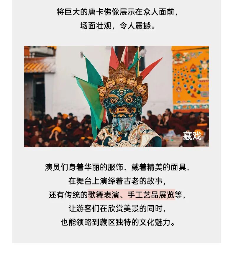 1.天亮的时候,周围各地藏族同胞,身着华饰,佩戴贵重的饰品,在寺庙前以乡村或部落为单位进行巡游。这是法舞开始前的欢迎仪式。