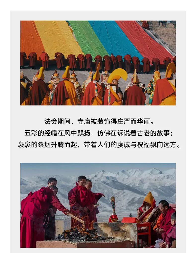 行程概览:早餐后出发乘车经过红原,穿越冬季空旷的红原大草原来到位于四川甘肃交界郎木寺镇,今天下午先参观甘肃寺院,也叫【赛赤寺】,寻找机位,全程拍摄毛兰姆法会重要的仪式——展佛。参观完成后入住酒店休息。