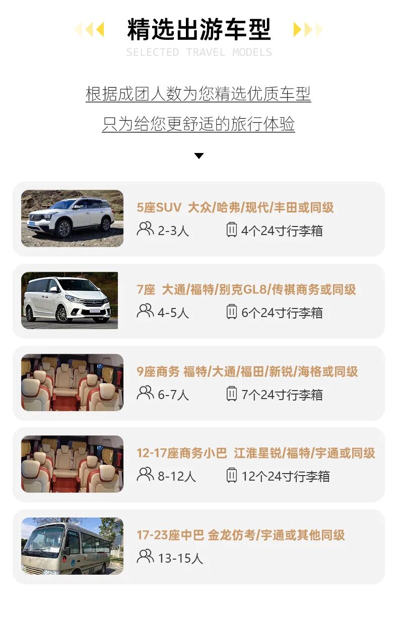 4、领队:活动成团人数8人及以上安排导游全程服务陪同;8人以下由司机提供向导服务。司机熟悉路线并给队员游玩建议,不陪同进景区。
