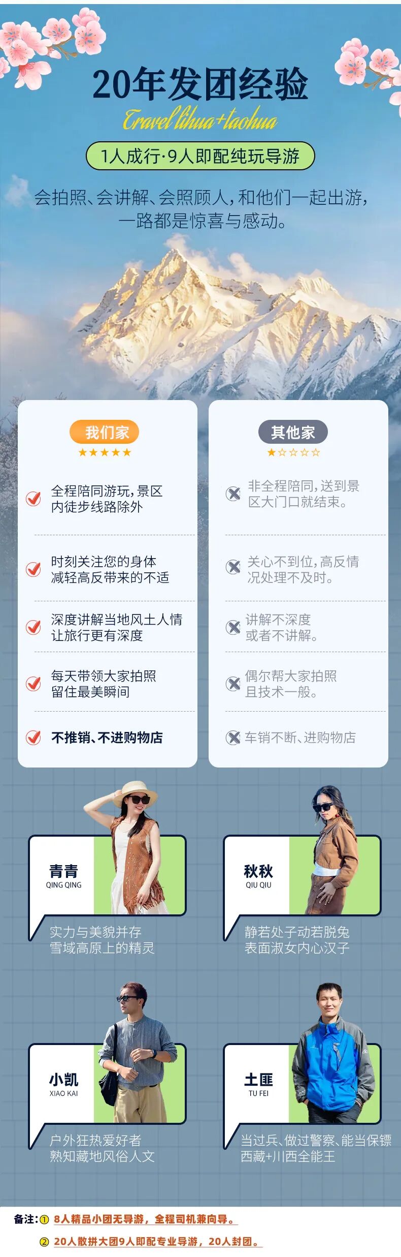 春季限定,拉萨(或第2天林芝)集合,拉萨(或林芝)完团,连发8期,期期成行,只在对的时间去对的地方。