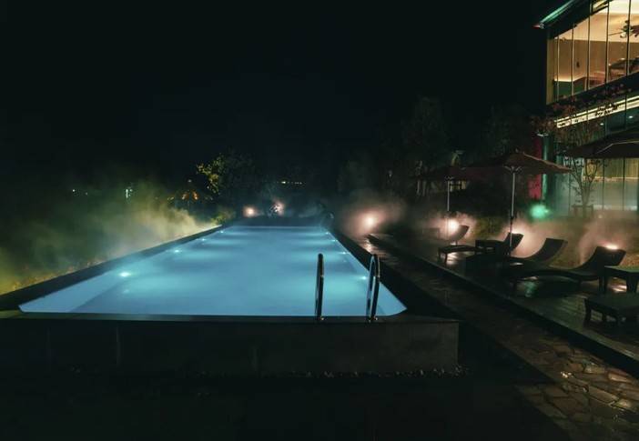 还有融入了药膳和药浴的养生池和升级款温汤无边泳池。